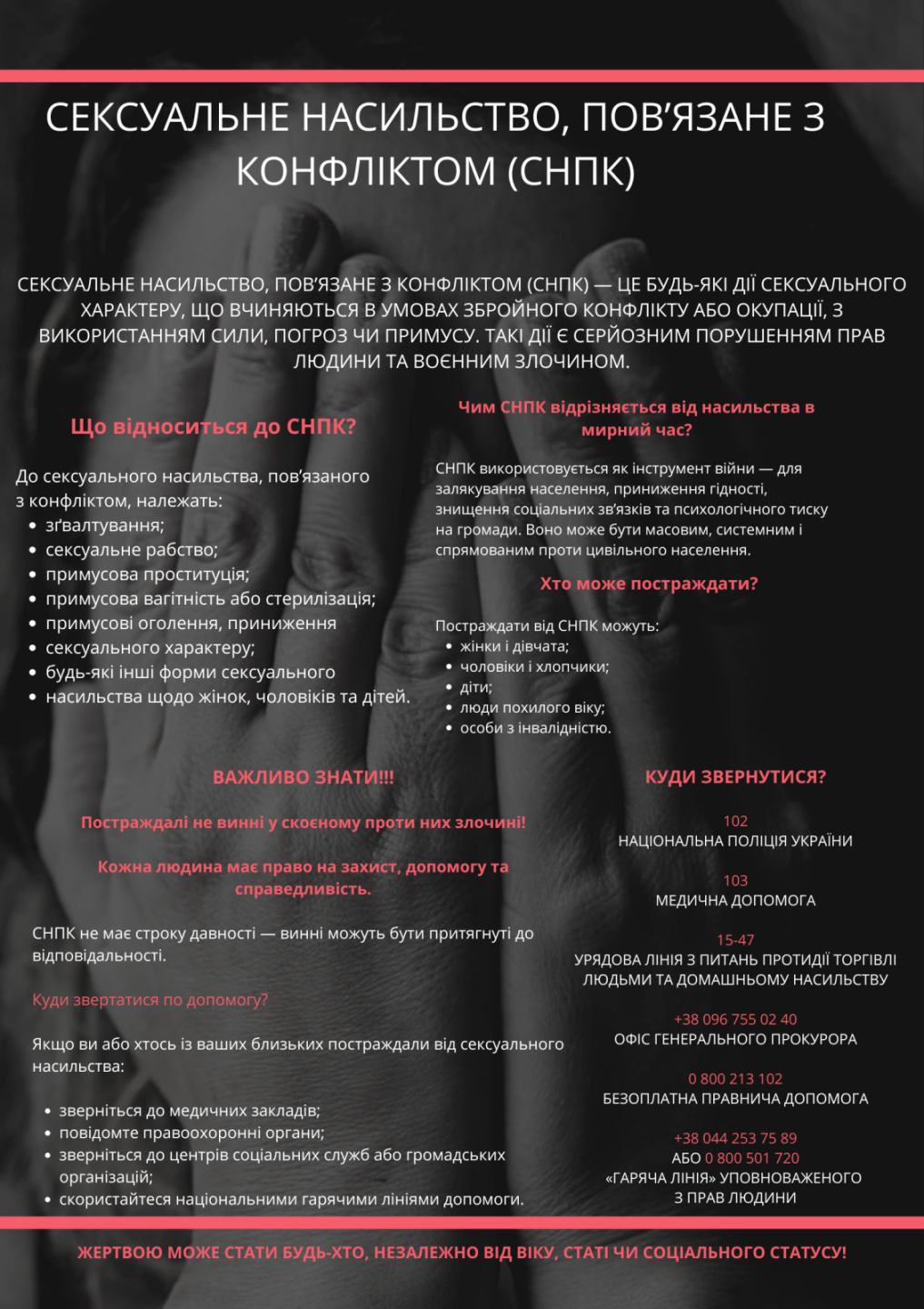 -люди, які страждають від домашнього насильства чи потрапили у ситуацію торгівлі людьми;
